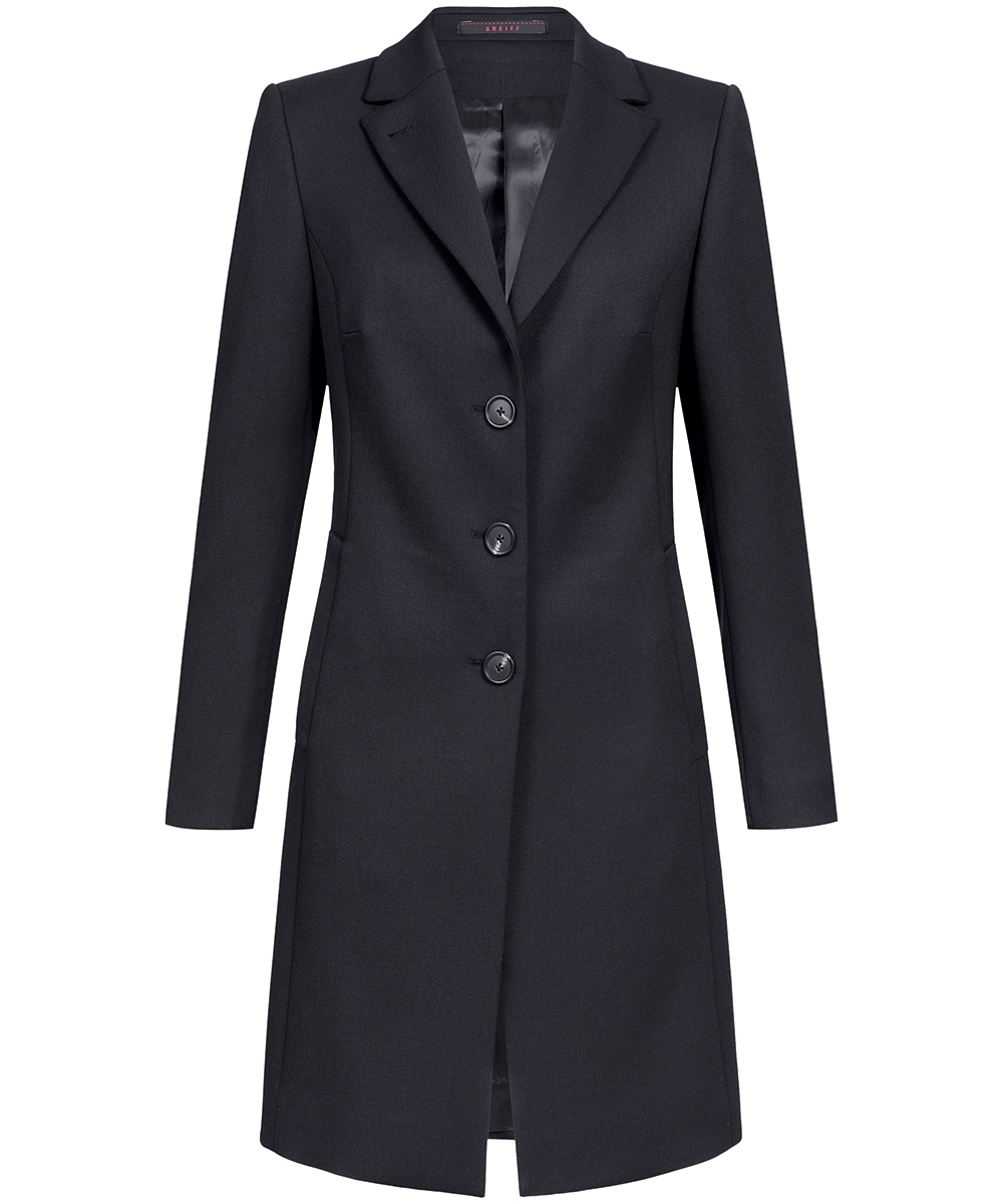 Damen-Mantel Regular Fit, 3-Knopf, verschließbarer Reverskragen, Wiener Nähte, 2 schräge Leistentaschen, 1 Innentasche, verdeckter Rückenschlitz, voll gefüttert, Rückenlänge 91 cm | Gr. M · Gewebe: 48 % Polyester, 47 % Wolle, 3 % Polyamid, 2 % Elasthan, 400 g/m² Futter: 50 % Polyester, 50 % Viskose Grössen: XS – XXL
