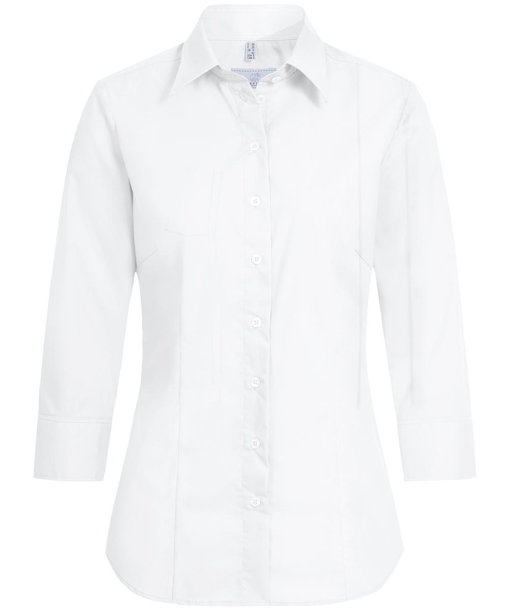 Damen-Bluse Regular Fit, elastisch, 3/4 Arm, Kent-Kragen · Gewebe: 62 % Baumwolle, 35 % Polyester, 3 % Elasthan, 130 g/m² Grössen: 32 – 52